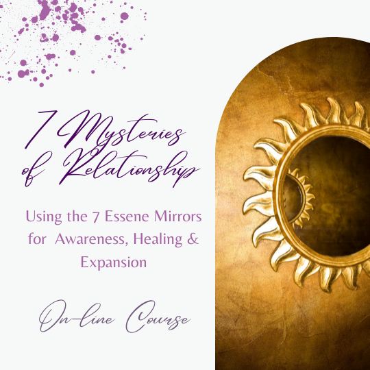 This on-line, interactive Workshop is based on the Wisdom Teachings of the Essenes, an ancient Jewish mystic sect. It takes us deeply into the reflections of our hidden self as mirrored back to us by anyone & anything we are in relationship with - partners, parents, strangers, habits, money, work...